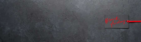 Black Friday - red handwritten inscription on a dark concrete background. The black tag. Copy space. The concept of the holiday sales