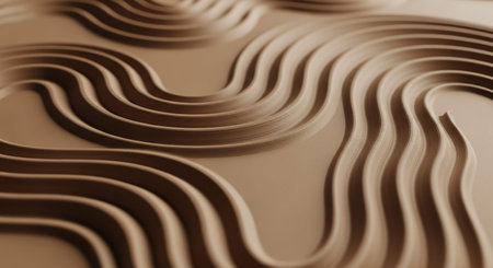 Abstract 3D rendering of flowing brown wavy lines and curves Clear details and vibrant colors enhance visual a...