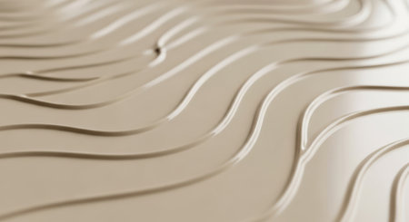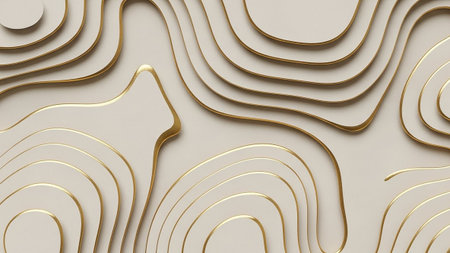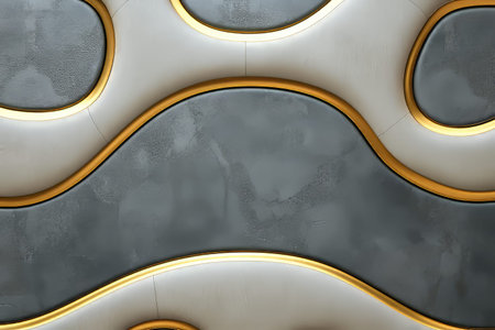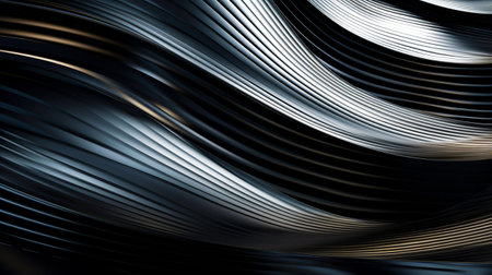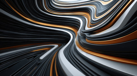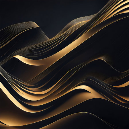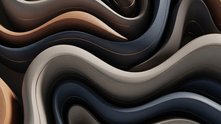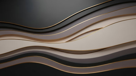 This image showcases a sophisticated and modern design featuring a wavy surface with smooth, flowing lines. The surface transitions from dark to light shades, creating a sense of depth and movement. Golden accents highlight the contours, adding a touch of luxury and refinement.