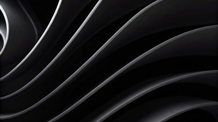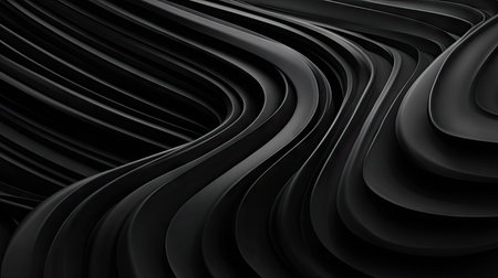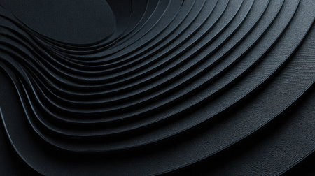 Explore this captivating abstract image featuring layered black material that creates wavy patterns and depth, perfect for backgrounds, designs, and modern art uses.