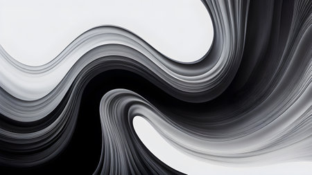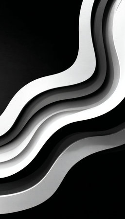Black and white background with abstract wave lines. Minimalist design, simple shapes. High contrast, sharp focus on the waves. Abstract art style, soft lighting to highlight the curves of the paper. The black background creates a striking visual effect. A perfect symmetrical composition, minimalist, high resolution, and hyper-realistic in the style of an abstract artist. --ar 3:2 --v 6.1 Job ID: 3550768d-ad2d-49ba-b57d-c7e4fecb065c