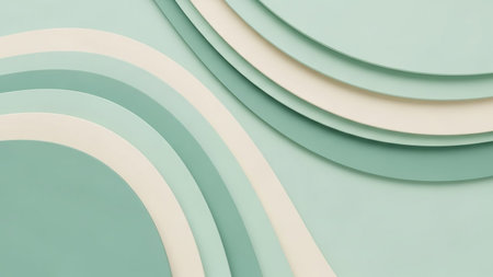 Creamy showing clean abstract background with layered curved shapes in soft mint green and creamy beige tones. resolution use.