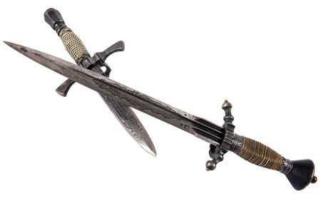 Medieval sword on a white background. The concept of medieval art.