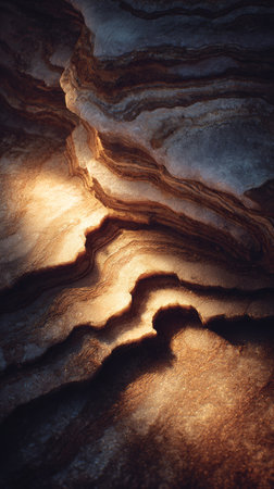 Layered rock texture sedimentary strata geological pattern earthy tone abstract nature stone surface organic lines warm light erosion detail