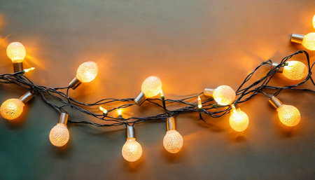 Warm Glowing String Lights on a Soft Grey Surface Creating a Cozy and Festive Atmosphere at Night