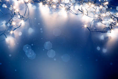 Midwinter blue with blurry light string for background and copy space