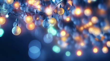 Generative AI : christmas lights threads decoration bokeh background