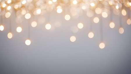 Defocused string lights create dreamy bokeh effect. Adding ambient glow to photography and backgrounds.