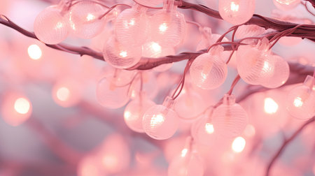 A mesmerizing blend of soft-focus branches, twinkling lights, and vibrant pink blooms, creating an enchanting, dreamy atmosphere perfect for seasonal events and decor.
