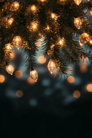Glowing Christmas Lights Adorn a Fir Tree Branch, Creating a Magical Festive Backdrop
