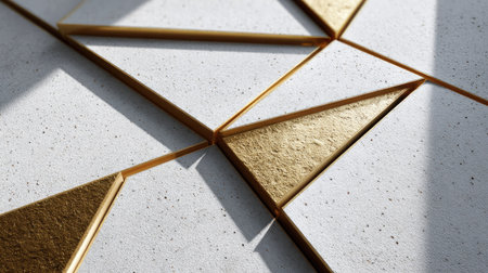 This image showcases a close-up of a modern geometric design featuring gold accents. The textured surface adds depth and elegance, enhancing architectural aesthetics.
