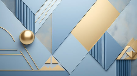 modern baby blue and gold background illustration geometric shapes, metallic accents, stylish sophisticated modern baby blue and gold background