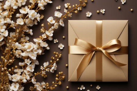 About a giftbox background decorated with floral shape elements. Generative ai.