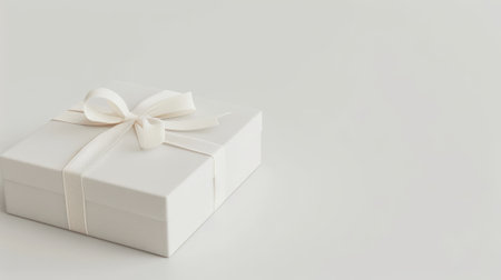 A beautiful white gift box tied with a silver ribbon set against a light background, ideal for showcasing gifts for any celebration or special occasion, evoking elegance and joy.