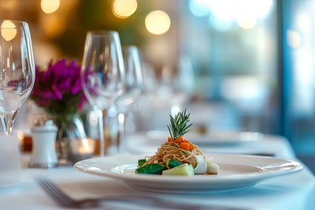 Luxury gourmet food served in restaurant.