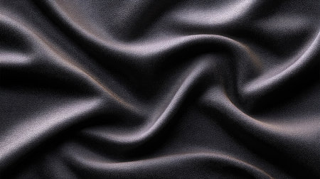 This image captures the soft sheen of black satin fabric, showcasing gentle waves that create an elegant texture, ideal for fashion, textiles, and artistic designs.
