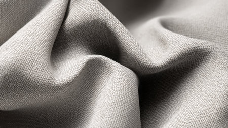 This close-up image captures the intricate texture of soft grey fabric, highlighting its natural creases and elegant appearance for design inspiration.