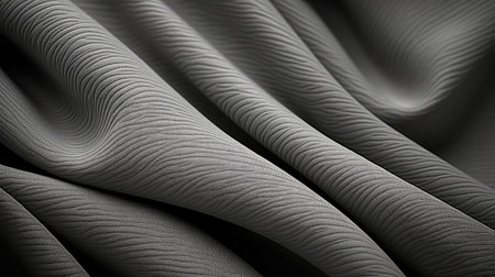 A close-up view of soft textured fabric featuring elegant dark gray waves. This versatile material is perfect for background, textile design, and other creative projects.