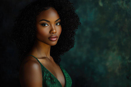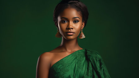 Sophisticated Black Woman in Stylish Green Outfit for Fashion Shoot