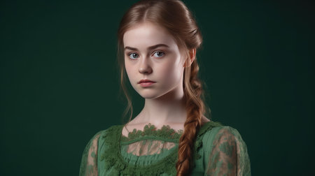 Portrait of a beautiful red-haired woman in a green dress.