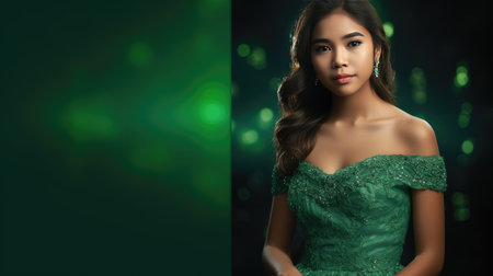 Portrait of a beautiful young asian woman in green dress.