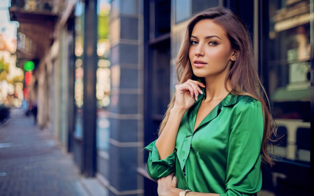 elegant girl in a green blouse