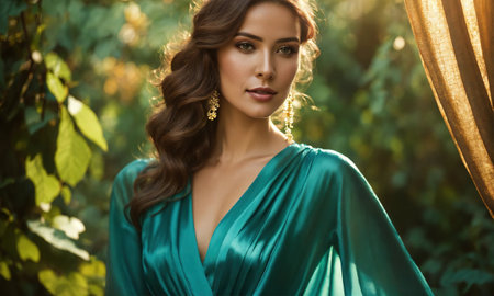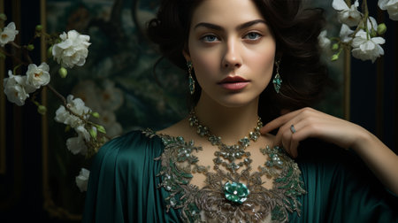 Emerald elegance a stunning display of green beauty in high fashion photography