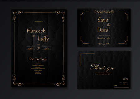 Elegant wedding invitation card template design luxury dark background with black and gold. Vector illustration.Eps10