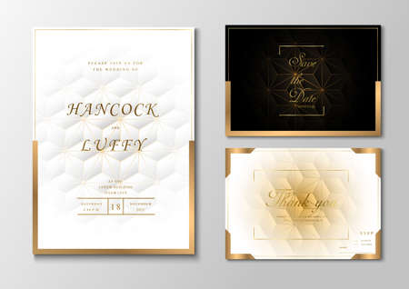 Elegant premium wedding invitation card template. Geometric design luxury background with golden frame