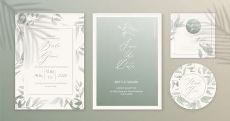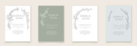 Modern Wedding invitation card template with brunches in line. Minimalism style