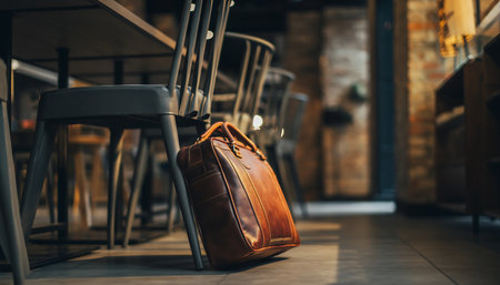 Luxurious brown leather briefcase on a car backseat. Concept of sleek design, business accessory, professional gear, stylish case.