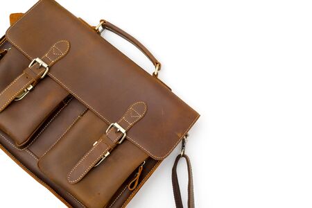 New Genuine Nubuck Leather Messenger Bag on iSolated White Background. Formal and Luxury Vintage Style for Men Accessories.