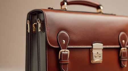 A close-up showcasing a vintage leather briefcase with precise stitching and a sleek silver clasp, emphasizing artisanal craftsmanship and refined elegance.