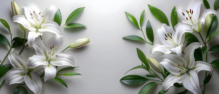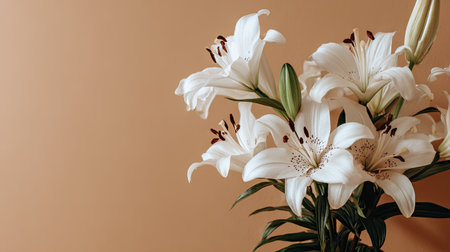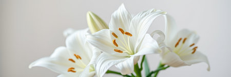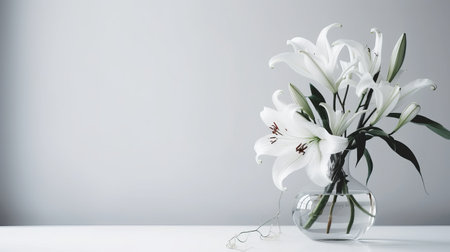 Elegant white lilies arranged beautifully on a simple background, showcasing their delicate petals and vibrant details