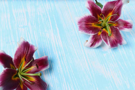 Purple lily flowers in the garden. Floral background.