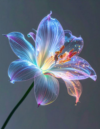 In a hidden, enchanted garden, a single flower blooms, its petals woven from pure light and magic.