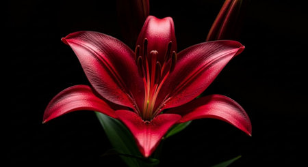 Beautiful red lily on a black background, close-up