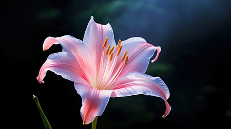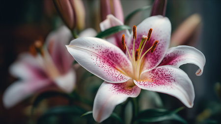 Elegant pink lilies in full bloom against a dark background, showcasing delicate petals and intricate details, perfect for nature and floral themes.