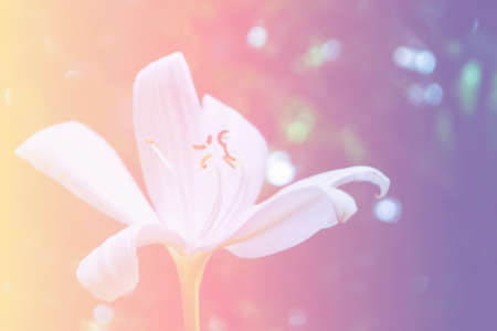Lily flower in the garden with water drops and bokeh