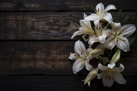 Elegant White Lilies on Rustic Wooden Background - Still Life.