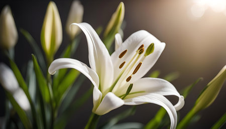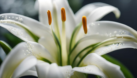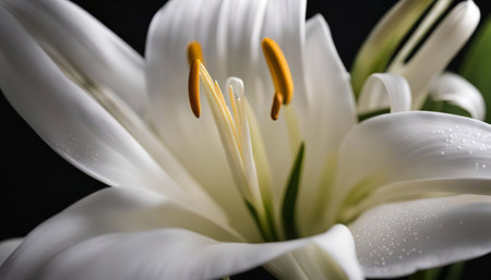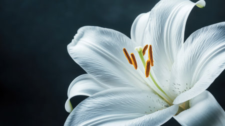 A stunning white lily flower elegantly positioned on a dark background, capturing its intricate details and vibrant colors, perfect for nature-inspired designs.