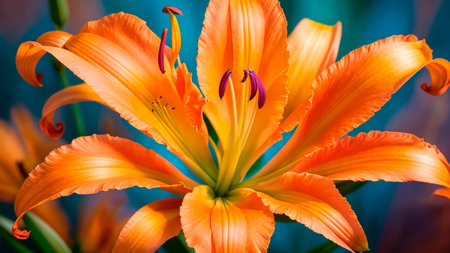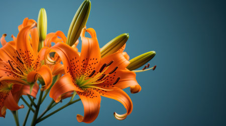 AI Generated. Orange Lily Bouquet with a Teal Background