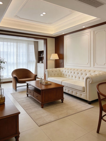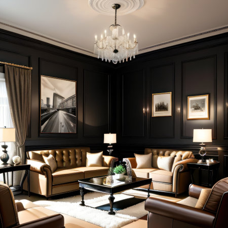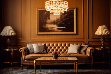 Luxury living room interior design with leather sofa and coffee table