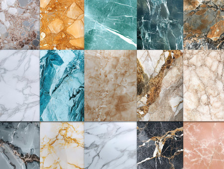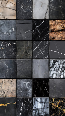 Smooth and textured marble floor tiles in various shades create an appealing backdrop perfect for interior design or artistic projects.