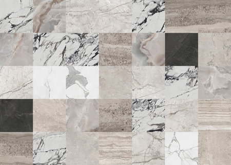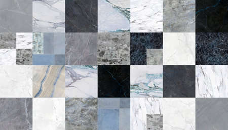 Beautiful patchwork pattern. Mixed of white, gray and dark gray marbles with different shapes