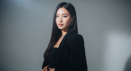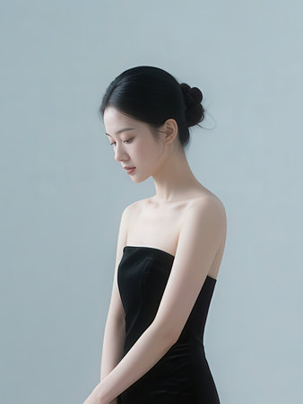Portrait of a young beautiful asian woman in black dress.