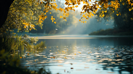 Beautiful autumn landscape with lake and trees. Fall season concept.