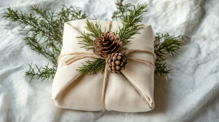 Sustainable Christmas Present Wrapping with Natural Cloths and Sprigs for Eco-Friendly Holidays