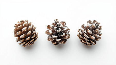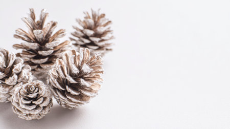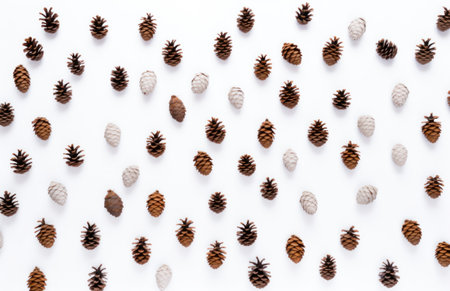Pristine Pinecones: Captivating Top-Down View Amidst Serene White Background - Perfect for Creative Copy Space