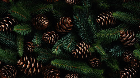Christmas background by generating an overhead shot of spruce and thuja branches, accentuated with cones, to convey the joyous spirit of the holiday season SEAMLESS PATTERN. SEAMLESS WALLPAPER